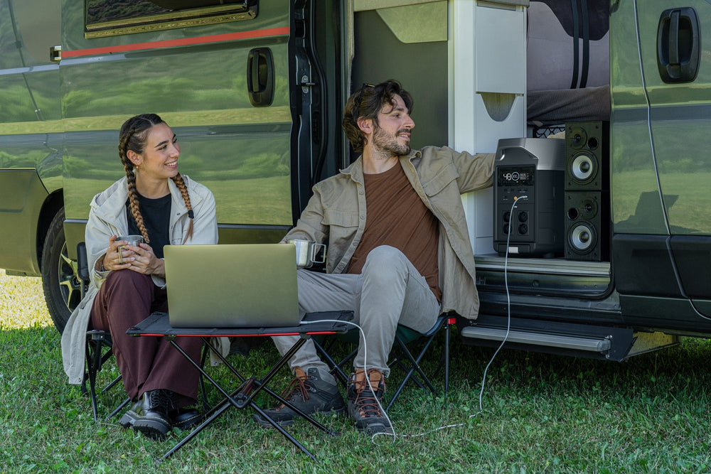 Bid farewell to noisy, fume-filled gas generators and relish peaceful, green, maintenance-free power wherever your RV adventures take you. Charge your RV essentials using DELTA Pro, or plug into a shore power outlet to directly power your RV's electrical system.