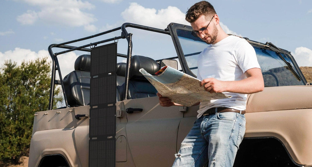 With its folding four-panel structure, the portable solar panel significantly reduces in size when folded, allowing it to easily fit into compact spaces such as backpacks, SUVs, or minivans.