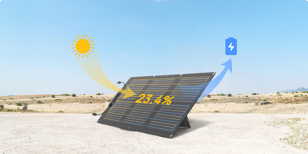 Com uma alta taxa de conversão de 23,4%, a estação elétrica portátil RIVER 2 pode ser totalmente carregada em apenas 5 horas durante os horários de pico de luz solar. Isso significa que você pode carregar o RIVER 2 em qualquer lugar e manter seus aparelhos essenciais ligados.