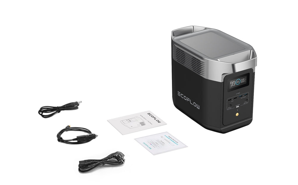1. DELTA 2 Max 2. Cabo de carregamento CA 3. Cabo de carregamento automotivo 4. Cabo DC5521 para DC5525 5. Manual do usuário e Cartão de garantia