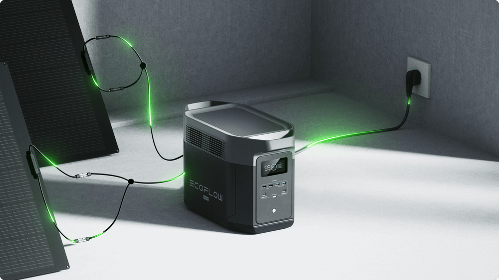 Com uma entrada solar de 1.000 W, totalmente recarregado em 2,3 horas mediante a conexão de até 2 Painéis Solares Portáteis de 400 W EcoFlow ou 4 conjuntos de Painéis Solares Bifaciais de 220 W.