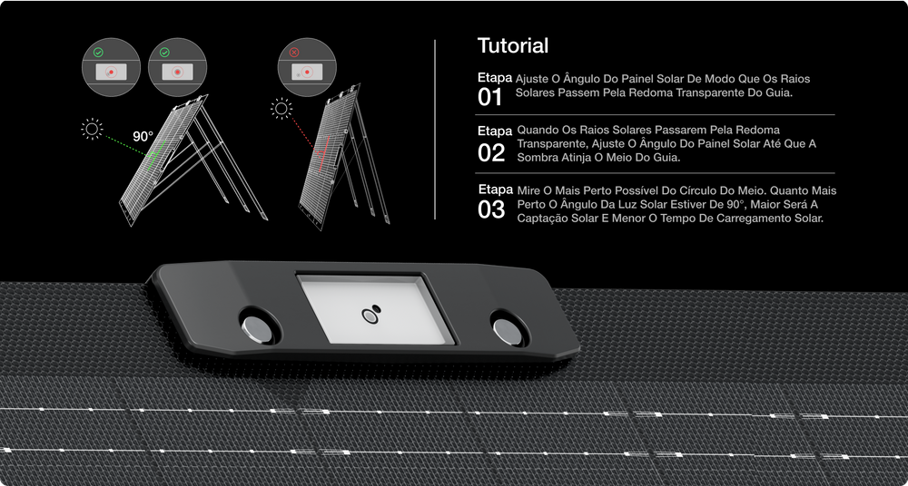 Mantém a luz solar em um ângulo de 90° com a superfície do painel para capturar o máximo de energia.