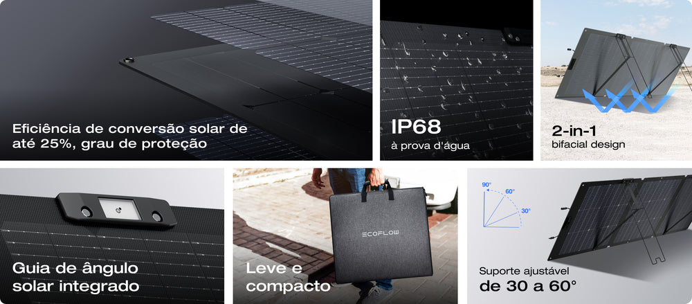 Com o guia de ângulo solar e o suporte recém-integrados, ajuste o ângulo do painel em até 30° em questão de segundos para capturar o máximo de raios solares a todo momento.
