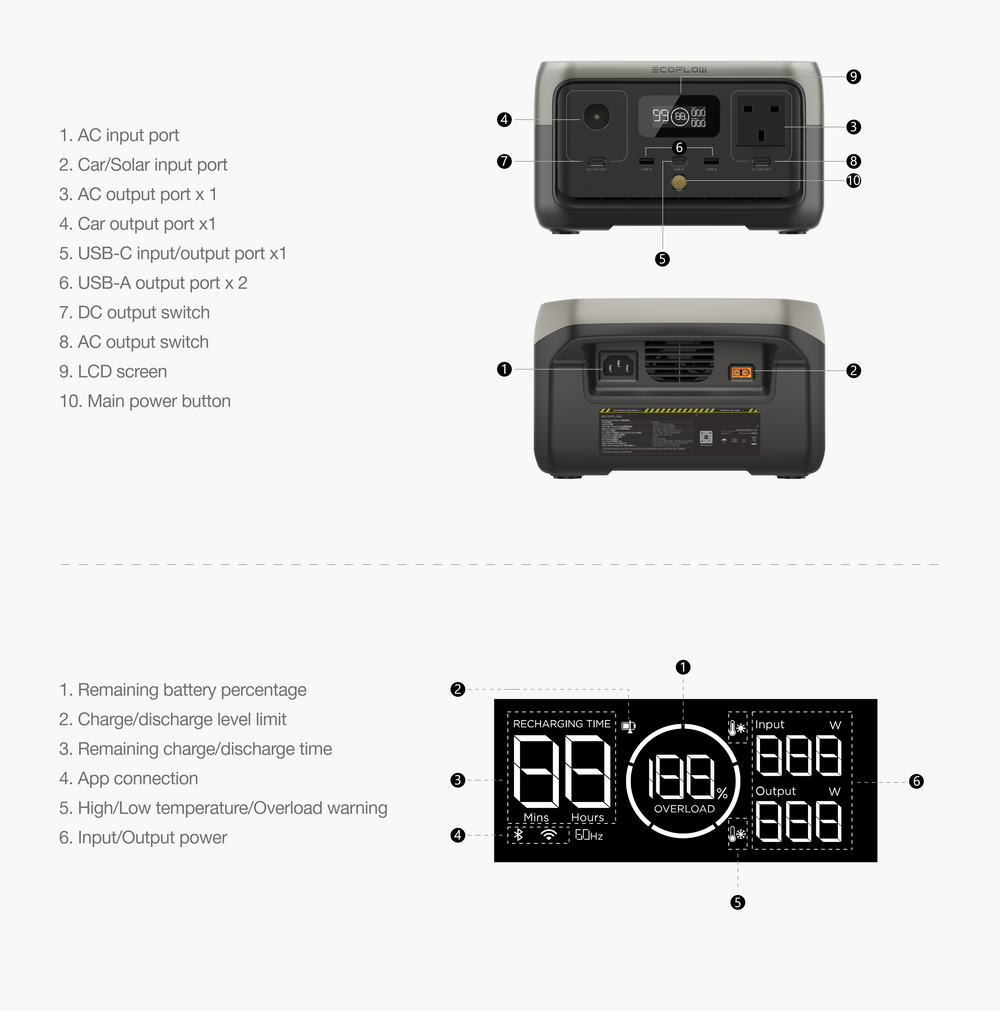 3. Ao carregar e descarregar em alta potência, o RIVER 2 Pro pode emitir ruídos de até 62 db.